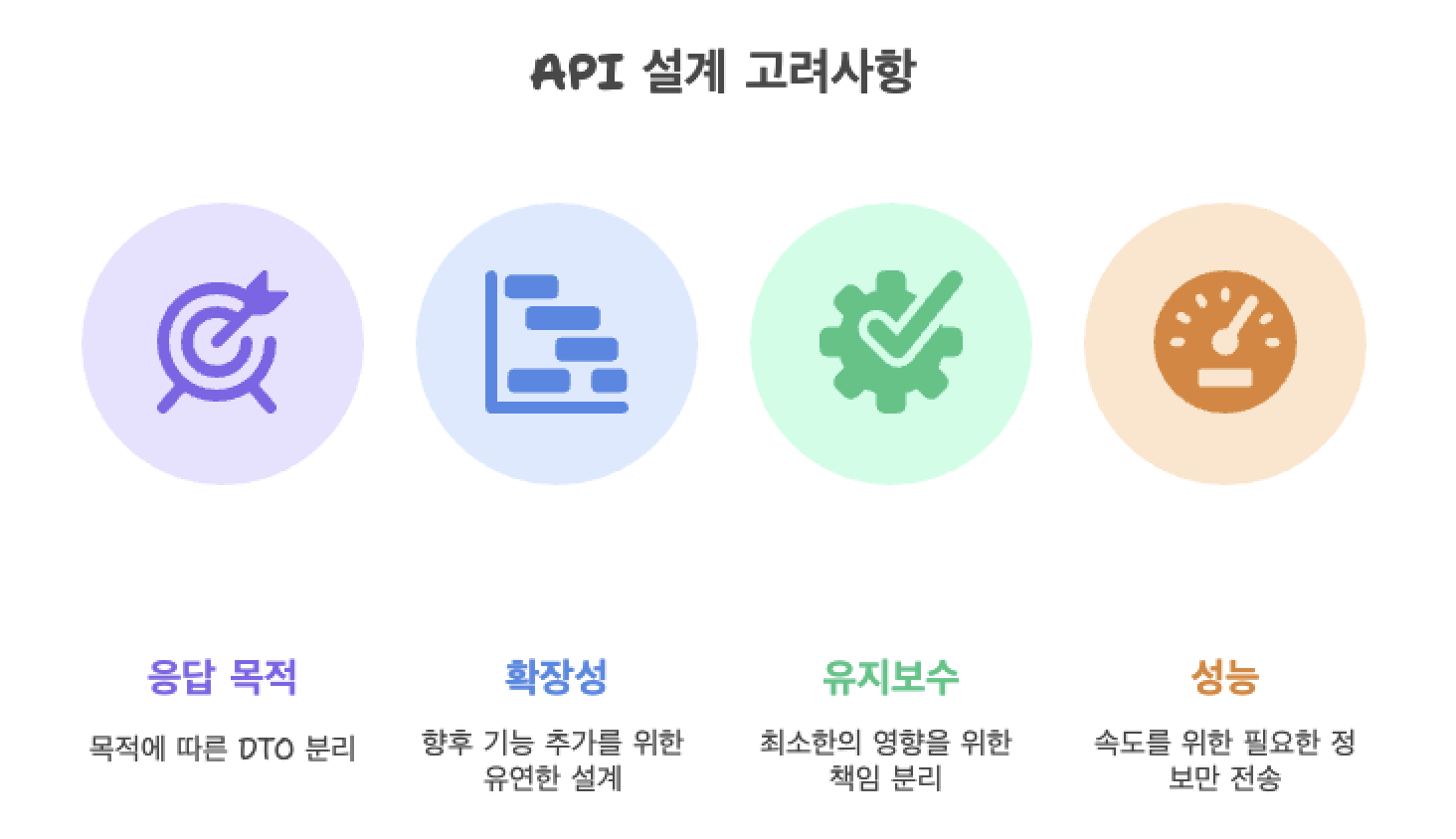 DTO를 API 목적에 맞게 나눠두면, 나중에 확장할 때도 구조가 망가지지 않는다.